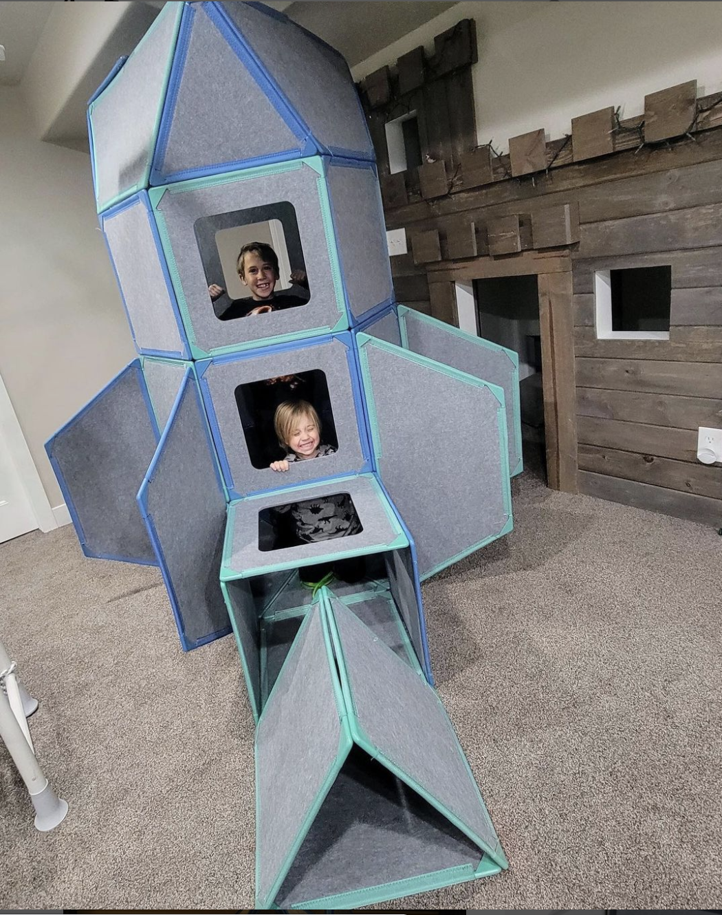 Os meus filhos passaram a tarde a construir este foguetão. O melhor é que inventam histórias e brincam juntos sem ecrãs. Os ímanes prendem muito bem e permitem-lhes criar formas impressionantes.